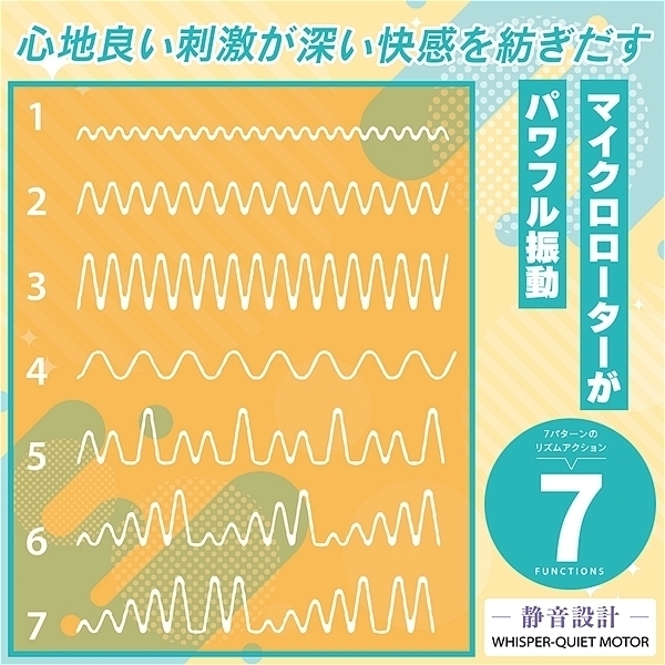 ピンポイントで敏感部分を刺激!ハイパワー&静音設計、マイクロローターがパワフル振動、7パターンのリズムアクション。