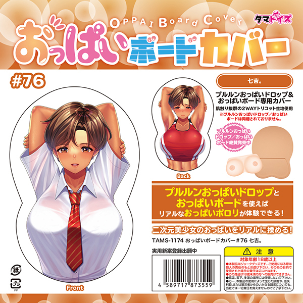おっぱいボードカバー76、イラストレーター七吉氏の描き下ろしキャラで魅力的な体験を♪専用カバーで、おっぱいポロリ体験をもっと楽しめる!2WAYトリコット生地で、優れた肌触り♪プルルンおっぱいドロップとおっぱいボードの組み合わせで、リアルな感触を体験できます!様々なキャラクターが描かれたボードカバーで、あなたの気分を盛り上げます。