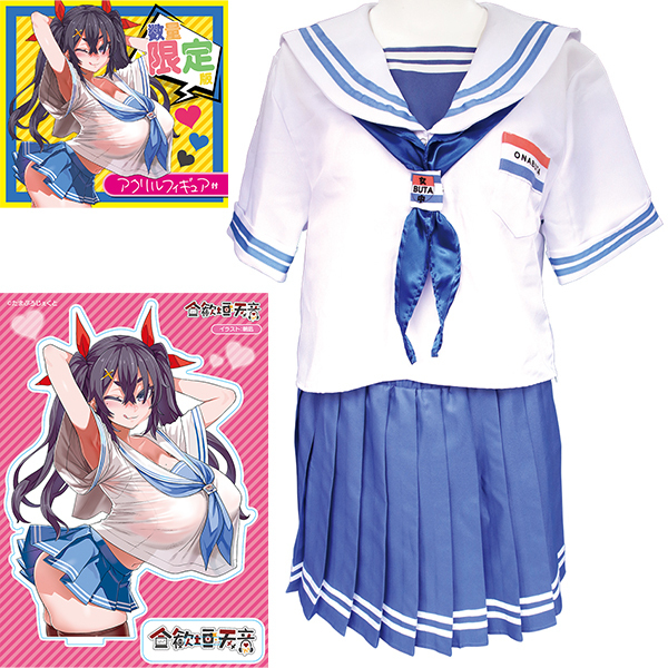 人気VTuber合歓垣天音との特別なコラボレーションで生まれた一品です♪キャラクターのセーラー服を細部まで忠実に再現し、ファンにとって魅力的なデザインとなっています!爽やかな半袖タイプで、清涼感溢れる仕上がりが特徴です♪おとこの娘用に特別に設計されており、2Lサイズとして提供されています♪ポリエステル100%の素材を使用しているため、軽くて丈夫で、長時間の着用でも快適な着心地を実現しています♪こちらの数量限定版には合歓垣天音さんのアクリルフィギュアが付属しており、ファンにはたまらないコレクターズアイテムとなっています! TAMS-1227