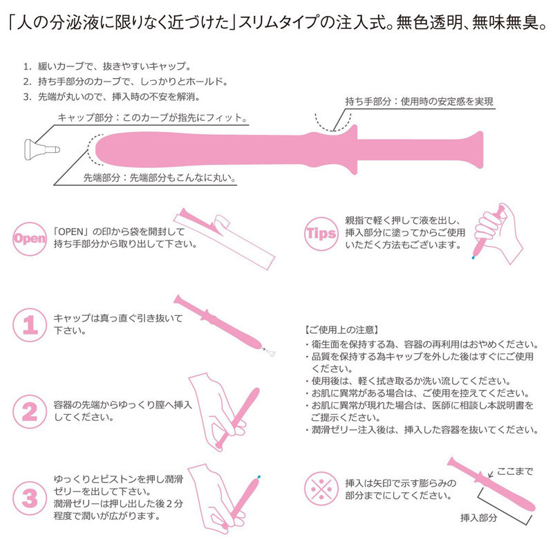 本製品は秘部に挿入し、押し出して使うスティックタイプ!手を汚さず使用できることや、一本にちょうどいい適量が入っているので使いすぎる心配がなく、経済的なのもポイント!鞄やポケットに忍ばせておけば、いざという時に役立つアイテムです。