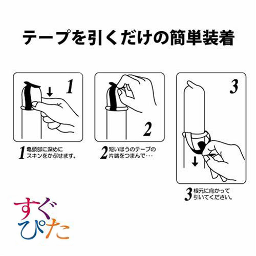 一度使ったらやめられない!テープを引くだけで簡単に装着できる、スピード装着テープ付きコンドーム「すぐぴた3000」12個入。
