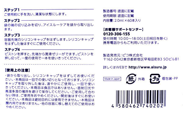 まとめ買いにも便利な業務用60本入り!潤い不足で悩む女性の為の潤滑ローション「アイスルーケア」。