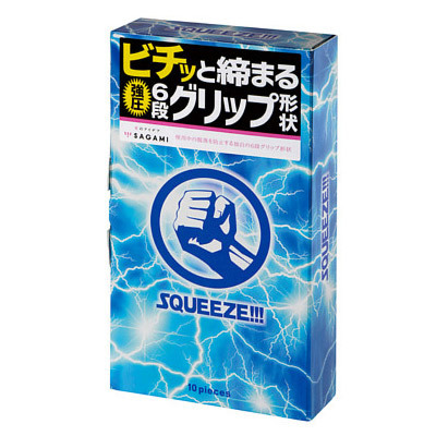 ビチッと締まる強圧!まるでギュッと握られているような締め付け感のサガミブランドコンドーム「SQUEEZE(スクイーズ)」10個入。