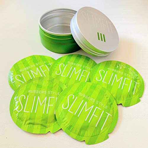 自然な装着感が心地いい!厚さ0.03mmの天然ゴムラテックス100%で仕上げた丸いパウチ入りコンドーム!お洒落なデザインのアルミ缶の中に個包装になったコンドームが5個入っています。
