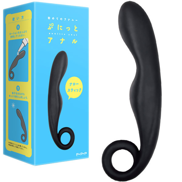 お尻にちょうどいい柔らかさ!直腸内でうねりやすい、細身のブラックシリコン製アナルプラグ。