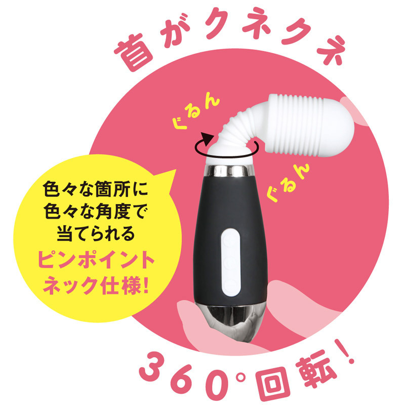 ●肌触りのいい高品質シリコンを採用●女性が手に持って疲れない、ちょうどいいサイズ&ちょうどいい軽さ●ジャバラネックが360度回転●快感ポイントをピンポイントに刺激●振動7種類・強弱パターン5段階、計35の多彩なアクション●真ん中ボタン:電源ON/OFF&振動パターン変更●上下ボタンで振動の強弱調節。