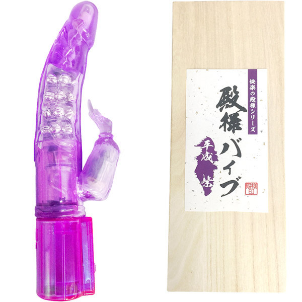 ●殿様バイブ・平成紫タイプ●品格が漂う桐箱風パッケージ●先細の亀頭でスムーズ挿入可●絶妙角度のクリバイブが振動●回転刺激のメタルパール内蔵●振動&回転は個別に操作可能●微調整しやすいスライド式。