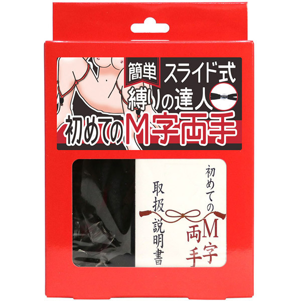 ビーズ玉をスライドさせるだけ♪柔らかな肌触りの綿製SMロープ「簡単スライド式縛りの達人 初めてのM字両手(黒)」。