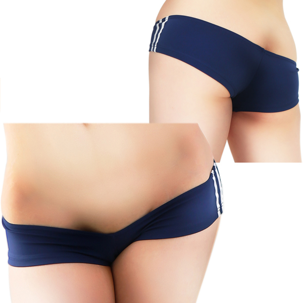 丈の浅いデザインで、お尻と鼠径部を美しく見せるセクシーなブルマです。