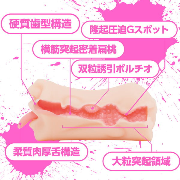 上はコリコリとした前歯と柔らかな肉厚舌で生々しいフェラ体験&下はゴリゴリとしたポルチオ突起に加えてキツく締まる内壁で圧搾!気分に合わせて使い分けできるJULIAの2wayオナホ。