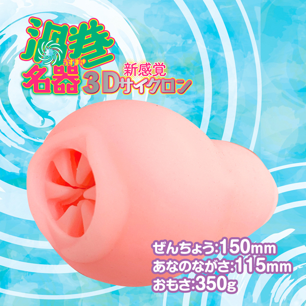 長さ13mmの縦ヒダが全方位から襲い掛かる快感!新感覚3Dサイクロン構造の非貫通型オナホ(ローション付)。