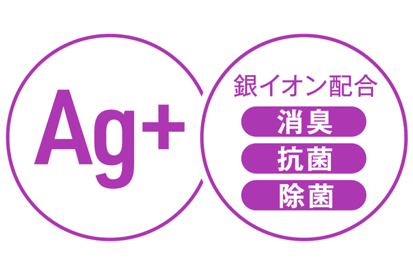 銀イオン配合で消臭・抗菌・除菌もできて、より衛生的に使用できます。