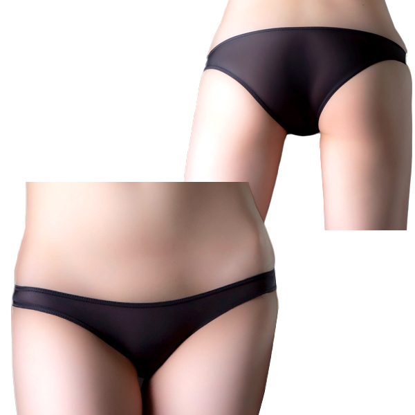 黒の微透感が大人っぽい!日本国内の工場で縫製され、肌触りが良く伸縮性と透明性の高い国産のストレッチ生地を使ったハーフバックショーツ。