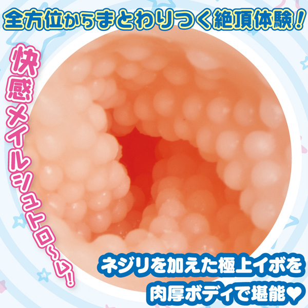 ズッシリ500g近いボリュームのある非貫通ホールで、トルネード状にギミックにビッシリとキレイな小粒イボを配置し、全方位から極上の刺激とバキュームを楽しめる「ずまき×ぐるぐ〜る」♪内部は壁全面に配置されたキレイなツブイボをトルネード状にすることで、360°から高刺激を感じられる構造で、ツブツブ感が無限ループし、捻りによる不意の締め付けを感じつつ、最奥の肉厚バキュームスポットでエア抜きすれば、かなりの絡みつき感を纏うことで、射精感が高まる構造になっています。