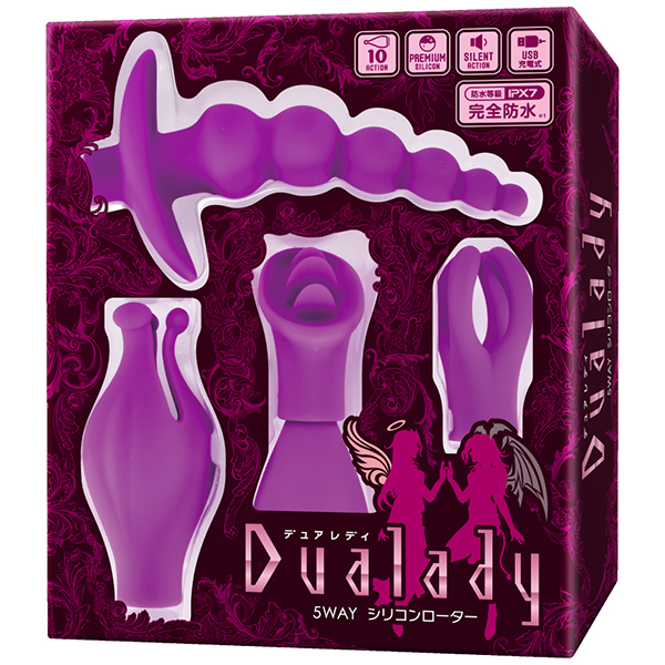 挿れて使う?それとも当てて使う?4種類のアタッチメントが付属し男女でいろんな箇所を刺激することで楽しめる「DUALADY 5WAY(デュアレディ)シリコンローター」。