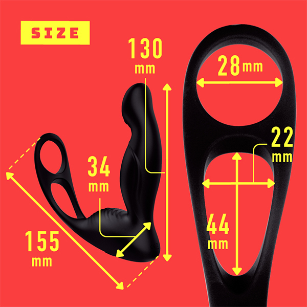 挿入部と会陰の2ヵ所でパワフルな振動を提供し、内外から快感を与えます!完全防水で遠隔操作も可能♪リングはタマと竿を締め付け、絶頂時の快感をさらに高めます。