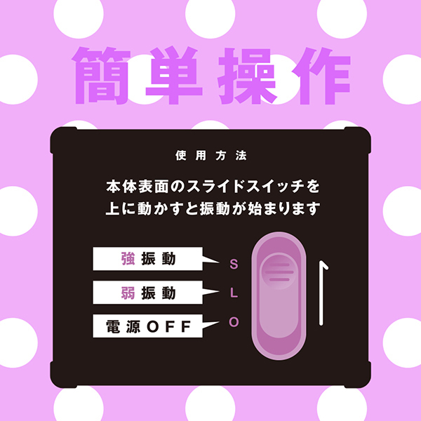 ビギナーさんに使って欲しいタイプで、簡単操作でお買い求めしやすい価格帯!「はじめて」に選んでほしい電マとなっています♪コンパクトボディーでもしっかりイケる強振動!誰でも簡単に操作できるシンプル設計でワンボタンでオンオフと振動の強弱を簡単操作♪ヘッドの素材はプラ系でネックの動きは軽快!電池を入れた状態でも90gの軽量設計ですので、使いたいときにすぐに楽しめます。