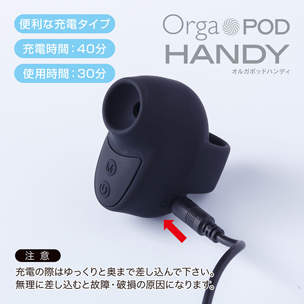 可愛いデザインと確かな吸引力で人気のオルガポッド・シリーズから指にはめて使用する超小型サイズの「オルガポッドハンディ(ブラック)」が登場!3段階のパワー強弱と7段階の振動パターンが楽しめて、お肌に優しいシリコン素材だから、つるっとした柔らかい感触をお楽しみいただけます。