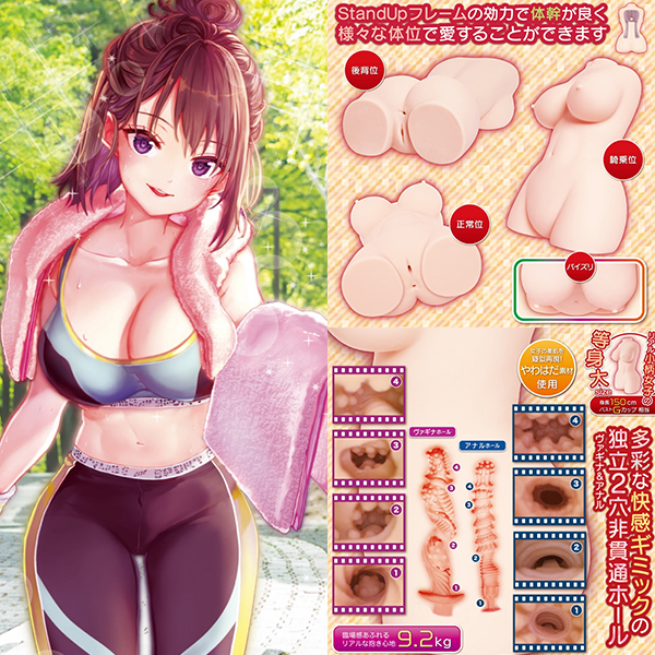 総重量は「9.2キロ」と存在感あるボリューム、加えて反らずに直立する「StandUpフレーム」の効力により、臨場感溢れるリアリティあるプレイをお楽しみいただける等身大トルソーオナホールです。