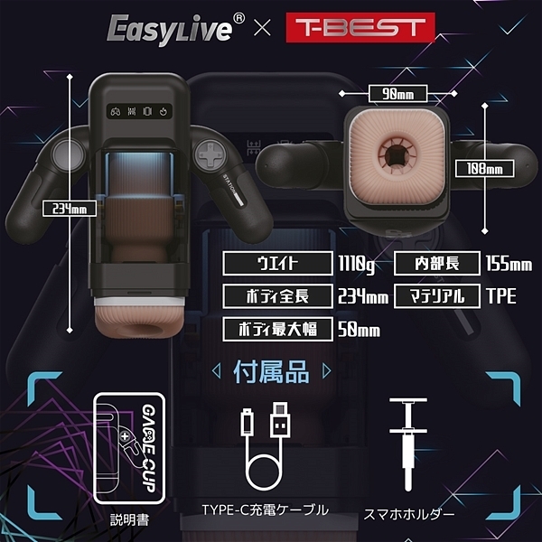 温熱機能を搭載し、ストロークパターン(8種)と振動パターン(10種)を自由に組み合わせることが可能!更には、本体上部にスマホを取り付けできるようスマホホルダーが付属されているため、いつでもどこでも携帯をカチッと取り付けて、お気に入りのムービーを見ながら昇天♪◎充電2時間で約120分使用可能。