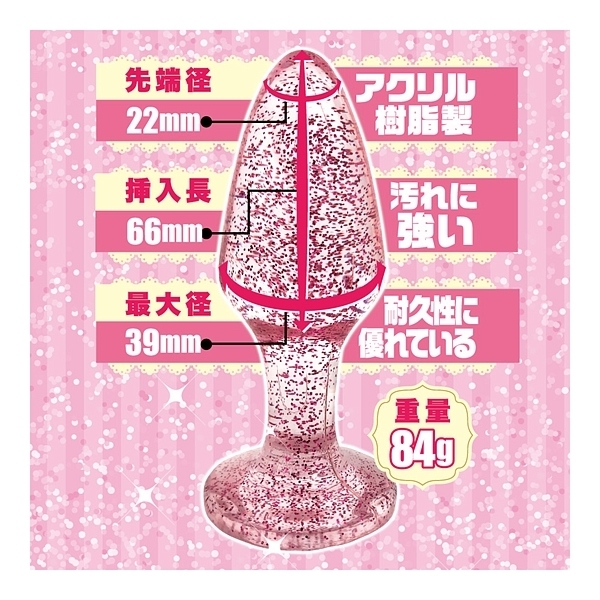 ラメ入りがとってもキュートなキラキラ系アダルトグッズ、「ラメ入りア●ルプラグ」!気分はまるでパーティー♪透明ボディの中には、キラキラのラメがみっちり入りました。