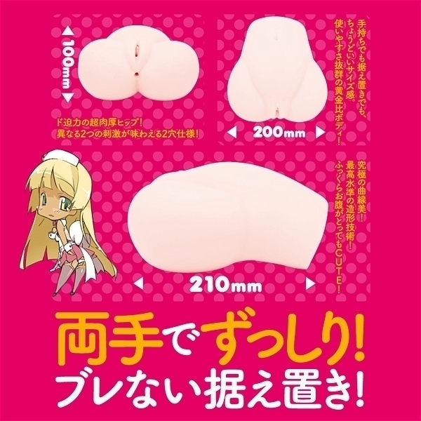 圧倒的リアル使用感で満足度MAX!ずっしり重量約2.2kg!手持ちでも据え置きでも、ちょうどいいサイズ感で、使いやすさ抜群の黄金比ボディ!究極の曲線美は、最高水準の造形技術!ふっくらお腹がとってもCUTE!ド迫力の超肉厚ヒップは、異なる2つの刺激が味わえる2穴仕様!使い方無限大!正常位でもバックでも騎乗位でも、色々な体位で楽しめます。