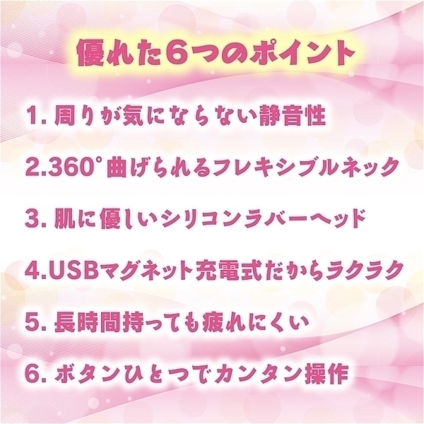 小さくても快感BODY!360°曲げられるフレキシブルネック!肌に優しいシリコンラバー!小さくて軽量なので長時間使用もOK!静音USBマグネット充電式