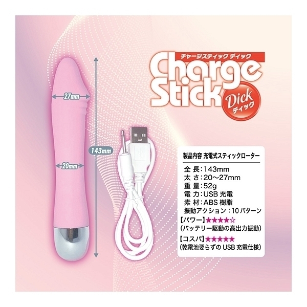 ハイパワー振動!コスパ最強!チャージ(充電)タイプのスティックトイが新登場!全長14センチとなる手のひらサイズの充電式スティックローターです。