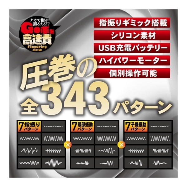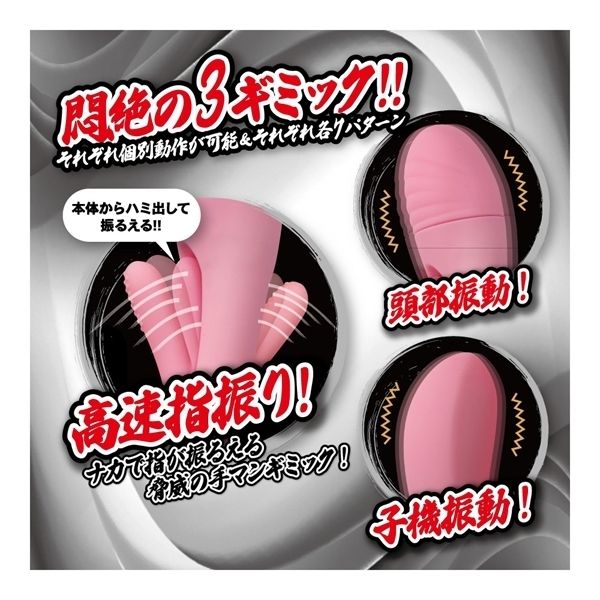 指振り・頭部振動・子機振動の3ギミックは、それぞれ個別動作が可能&それぞれ各7パターンのアクションを搭載!7×7×7の振動アクションで全343パターン!フィンガリングでゴージャスな快感をお楽しみください!