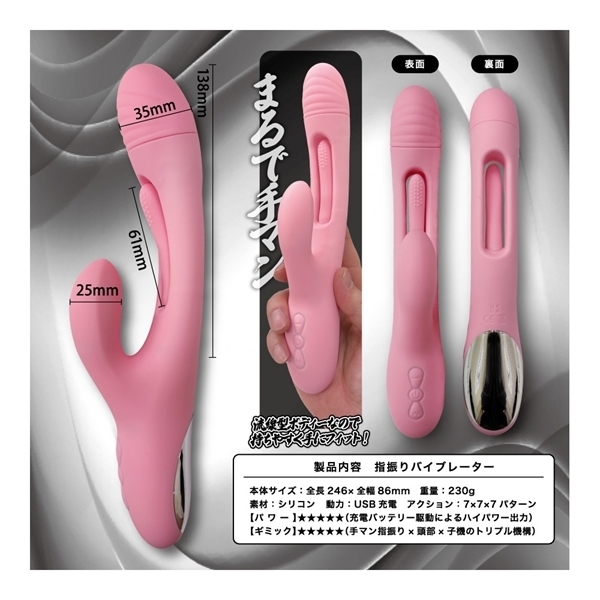 まるで手マンのような、「指振り」ギミック!本体中央部にある、長さ6.1×太さ1センチセンチの棒状突起が、本体からハミ出すほど振るえるギミックを搭載。
