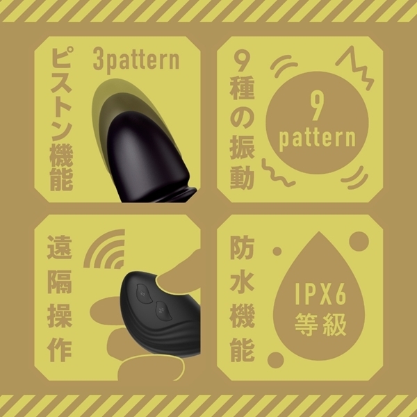 快感を引き出す3つのピストンパターンと9種類の振動で、初心者から玄人まで楽しめます♪会陰を同時に刺激するモーターでさらに快感が増し、Wリングでしっかりと締め付けることで、体験を一層強化します!高品質なUSB充電式で、水洗い可能な防水設計です。