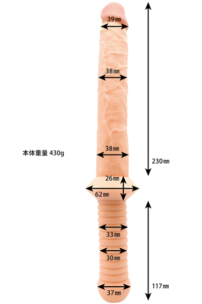 最大37cmを超える超ロングボディは、筋浮き立つ男根形状と刺激的な蛇腹デザインの両頭仕様!肉感&程よい弾力でボディをU字に曲げる事も可能。