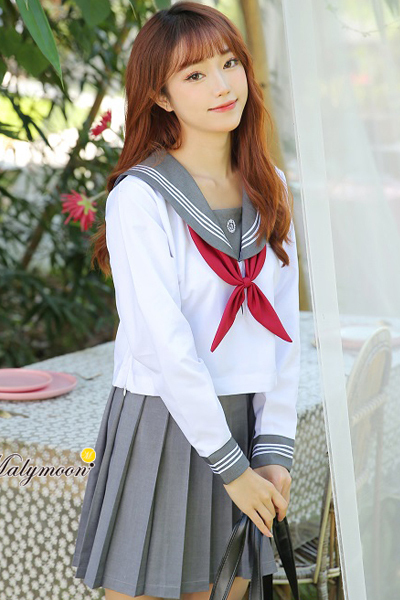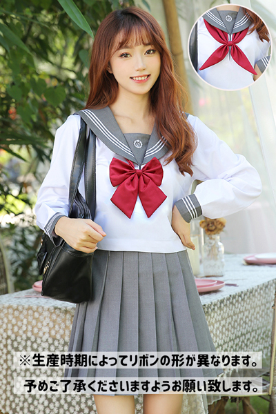 真っ赤なスクールリボンが映える清楚な長袖セーラー服。