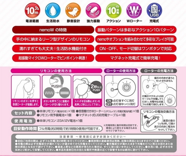 ラブリーなデザインで人気の「ネモ」ブランドから、クリップ型ワイヤレスローターが登場♪本体はキュートなハート型で、重量8gのクリップ型ローターが二つ付いています。